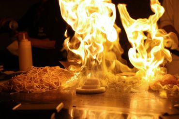 Hibachi is a cuisine style that a chef cooks right in front of customers and performs amazing shows with forks and knives! The climax of the show comes with a fire and sake smoke erupt from an mini onion volcano. A fun experience!